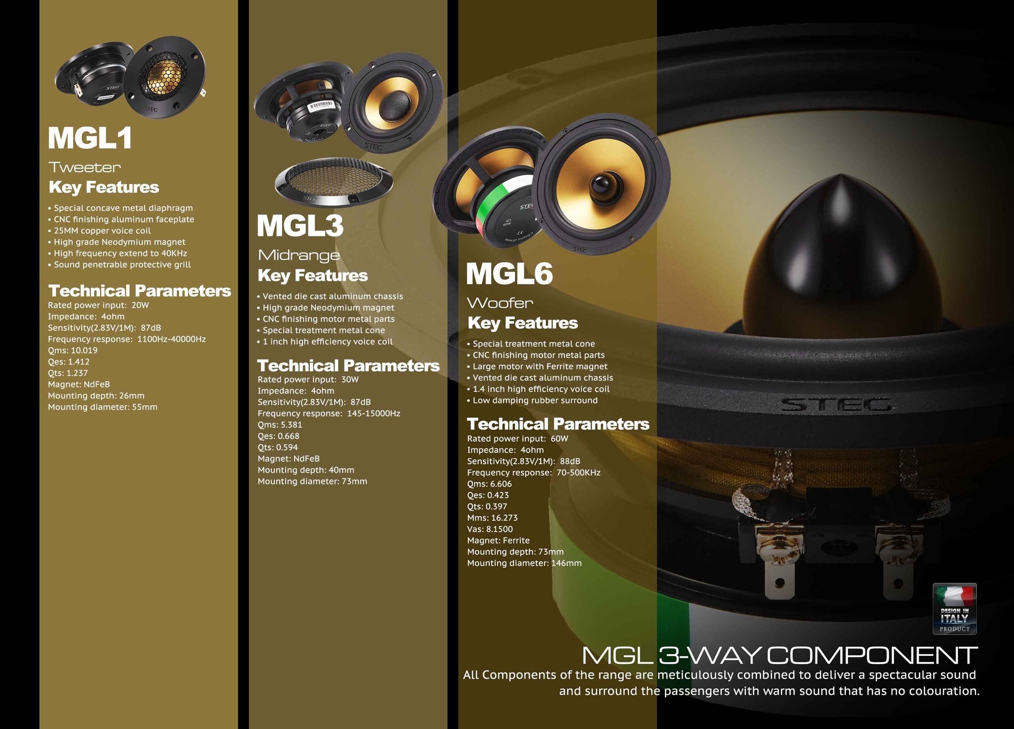 【受注販売品】【国内正規品】STEG MGL6.3.1 3wayセパレートスピーカー 3wayコンポーネントスピーカー