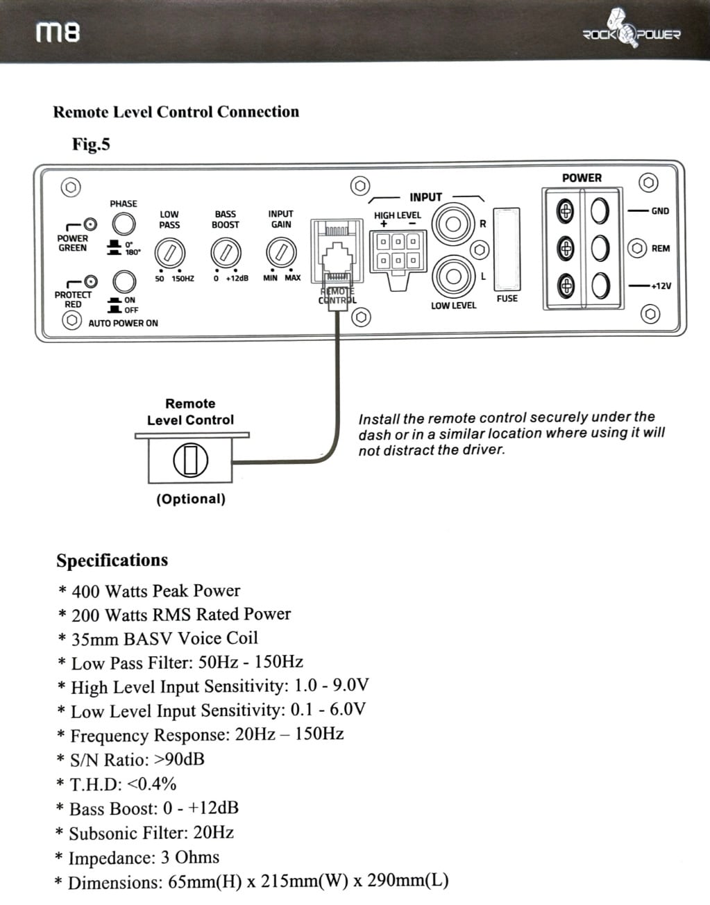 【国内正規品】ROCK POWER M8 クラスABアンプ内蔵8インチ薄型サブウーファー