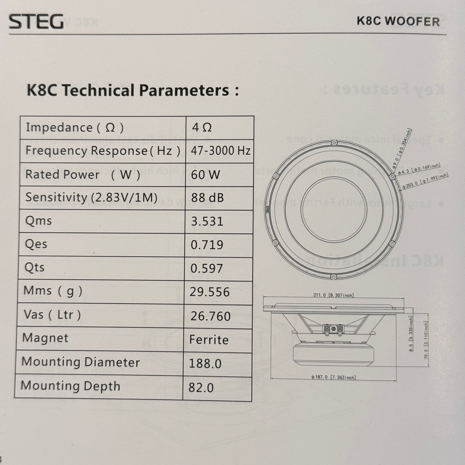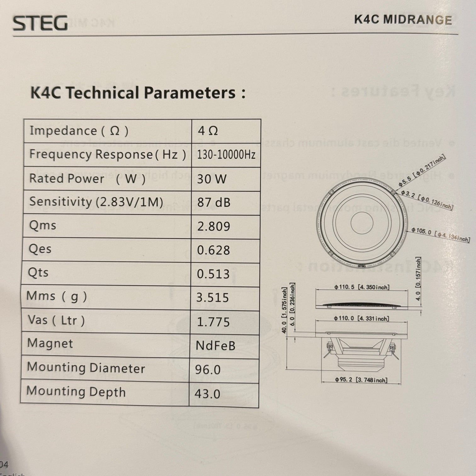 【受注販売品】【国内正規品】STEG K8.4.1C 3wayセパレートスピーカー 3wayコンポーネントスピーカー