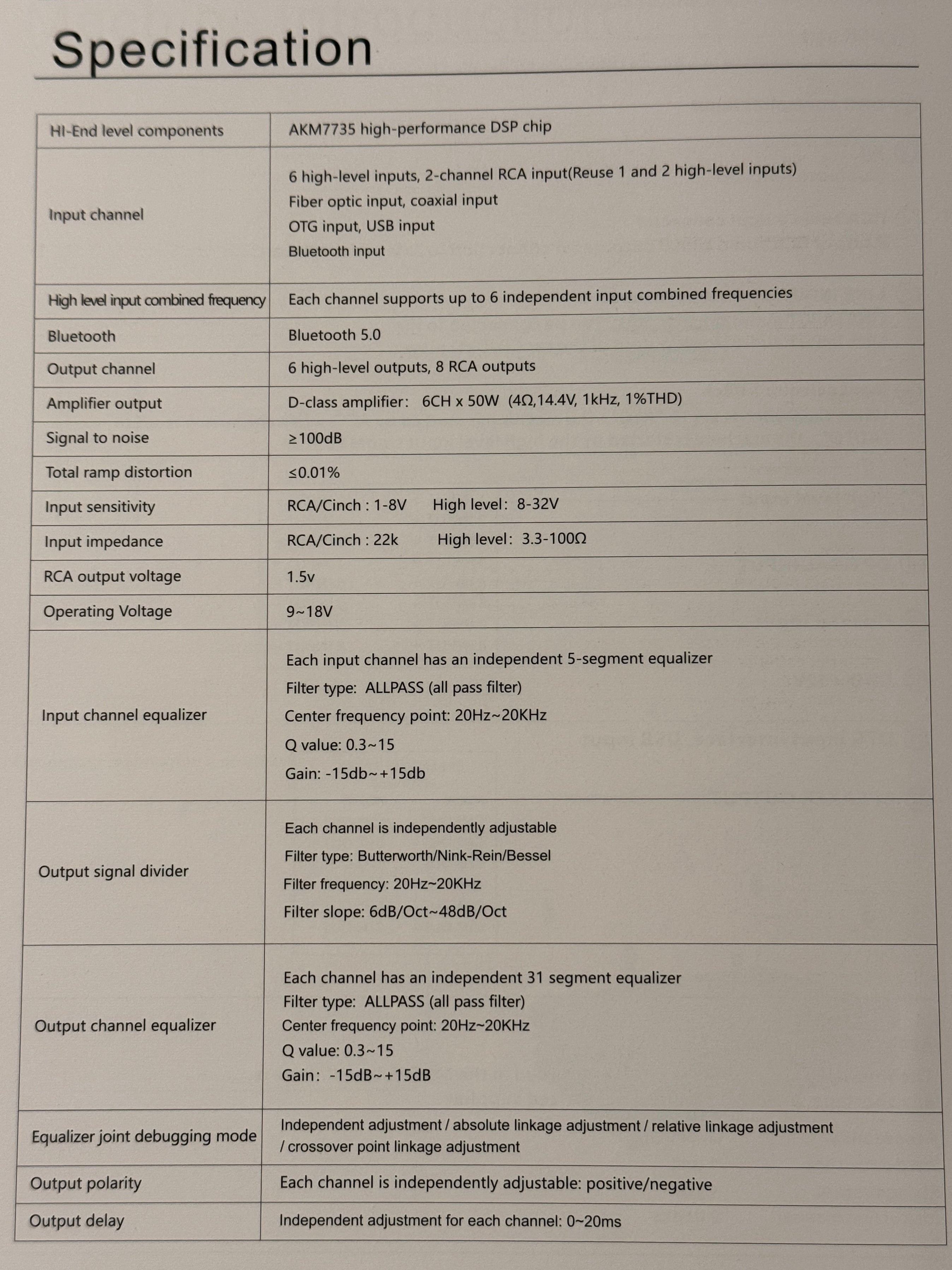内蔵アンプも6ch×定格50W高出力アンプを搭載しており、内蔵アンプのみでフロント3way等の構成もパワフルかつ高音質に駆動する事が可能です。