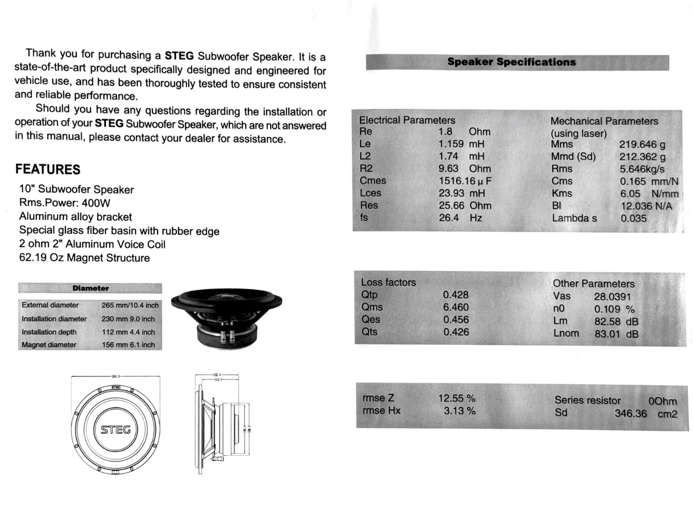 【国内正規品】STEG 「ST-10PRO」 ハイエンド10インチサブウーファー