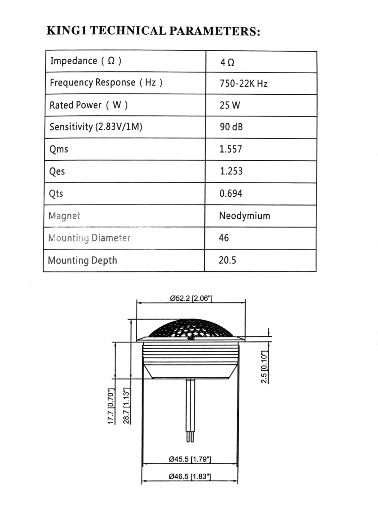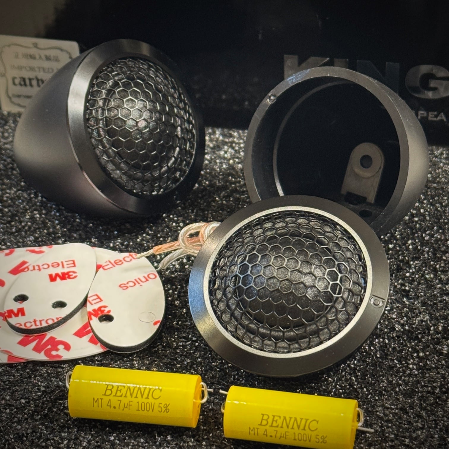 同ブランドのワイドバンドスコーカーを採用したハイエンド2wayモデルKING62Cと合わせて3wayの構成もマッチング良く実現頂けますし、今ご使用中の純正ツイーターや社外ツイーターから交換頂いても大きな効果が期待できます。