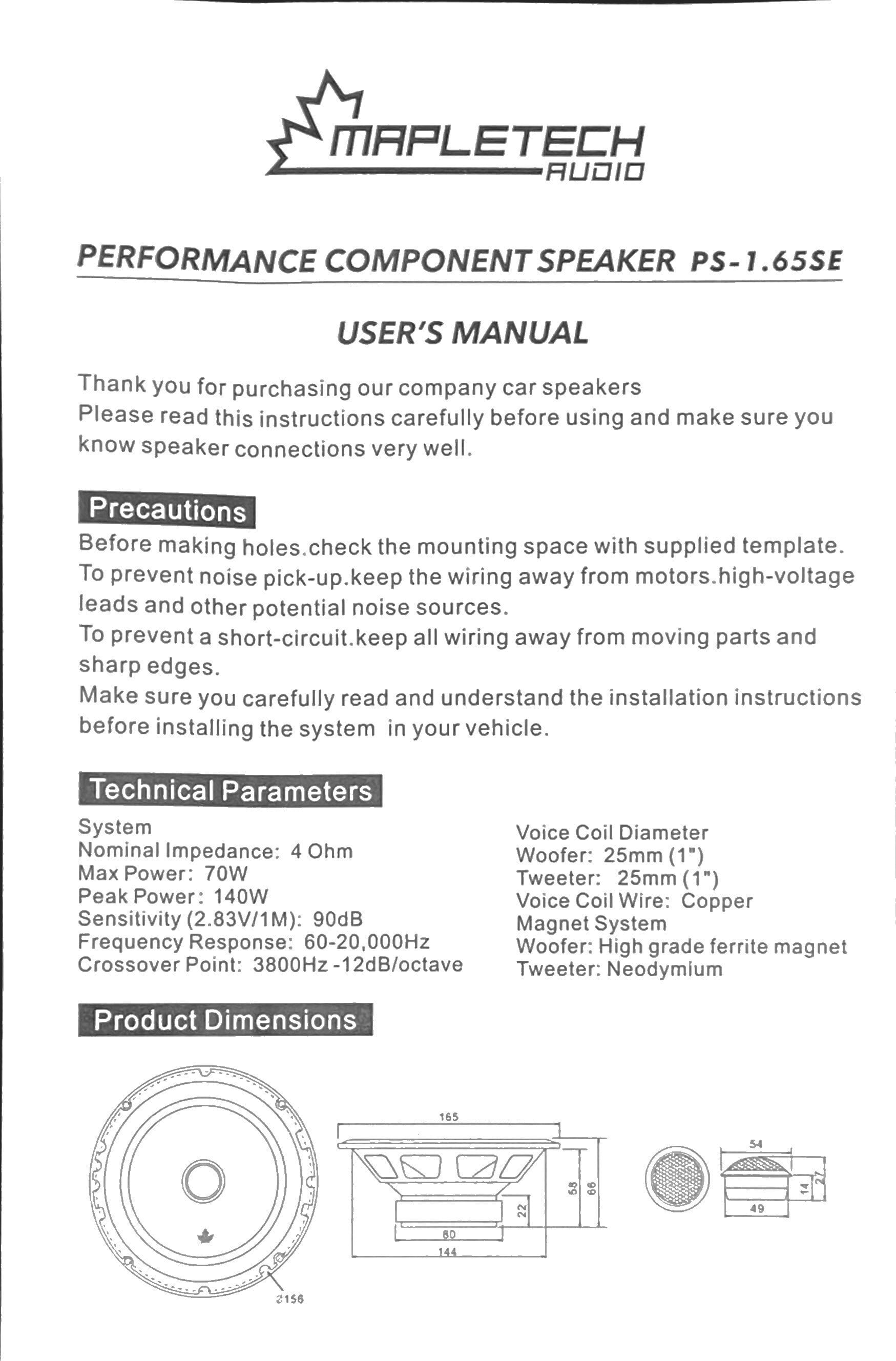【新春初売り】Mapletech Audio(メイプルテックオーディオ) PS-1.65SE 2wayスピーカー