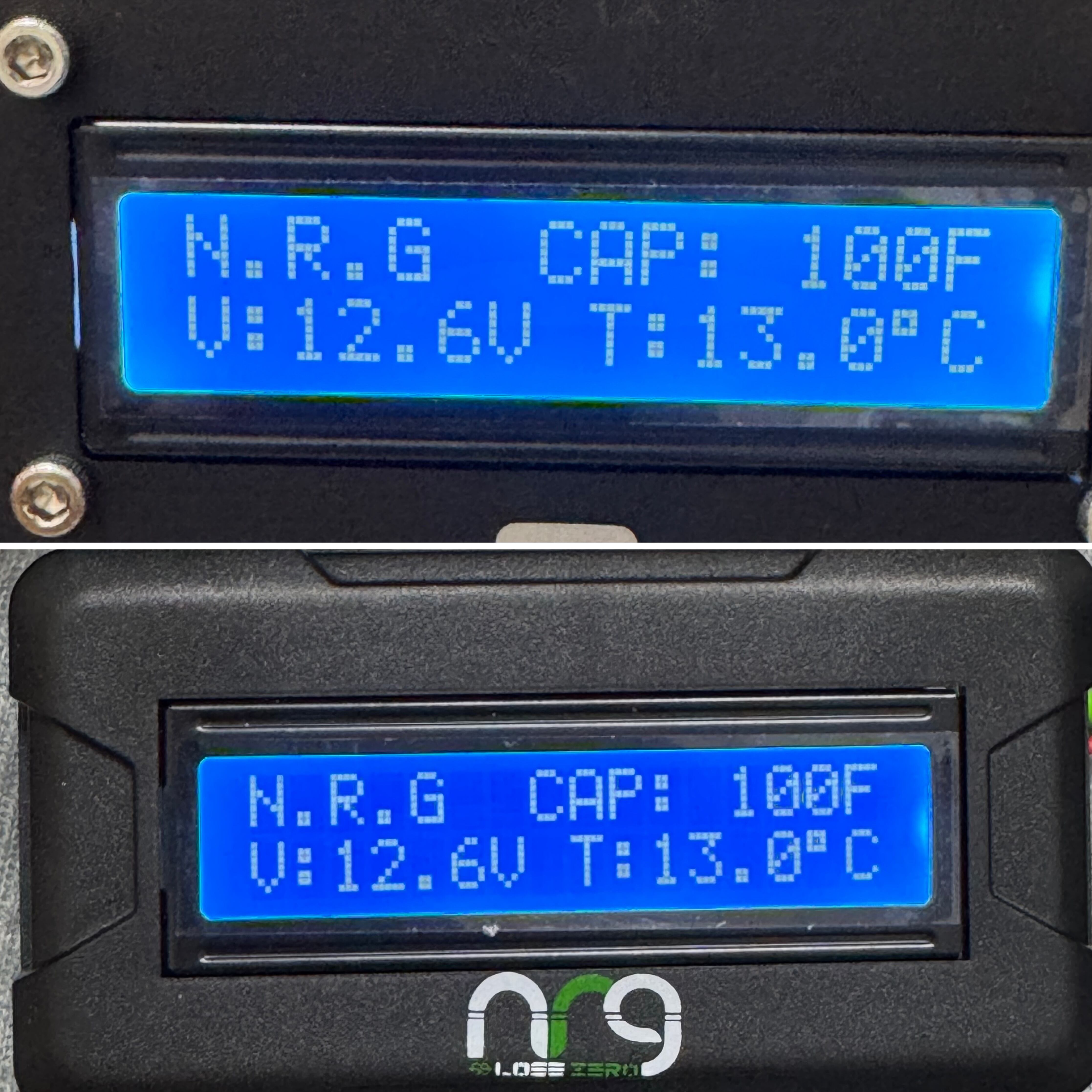 表示はキャパシタ本体側モニターと同様のキャパシタ容量及び温度、電圧表示が可能です。