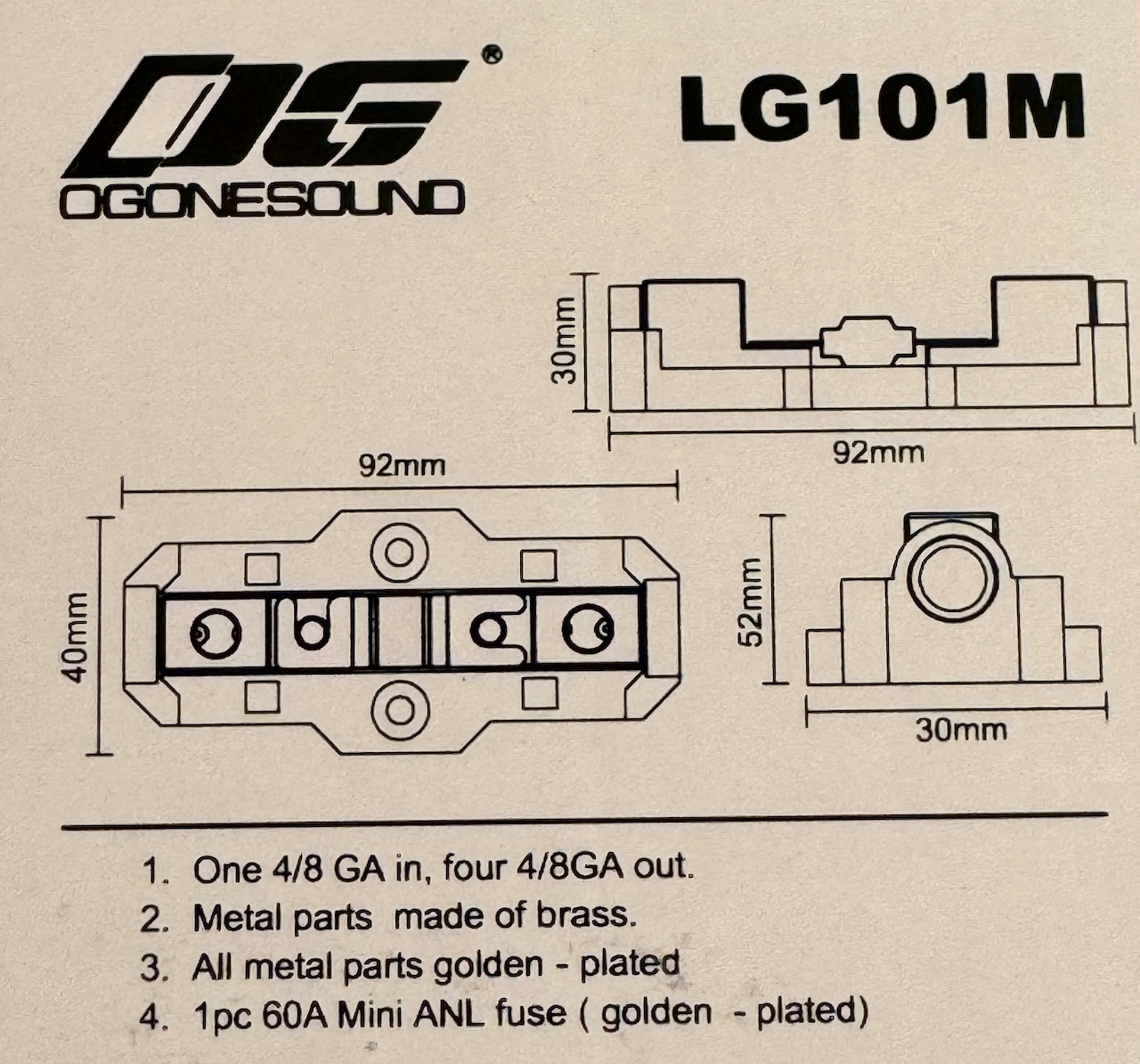 【国内正規品】OGブランド ヒューズブロック「LG101M」バッ直保護に最適 1in→1out(ヒューズブロック ANL)