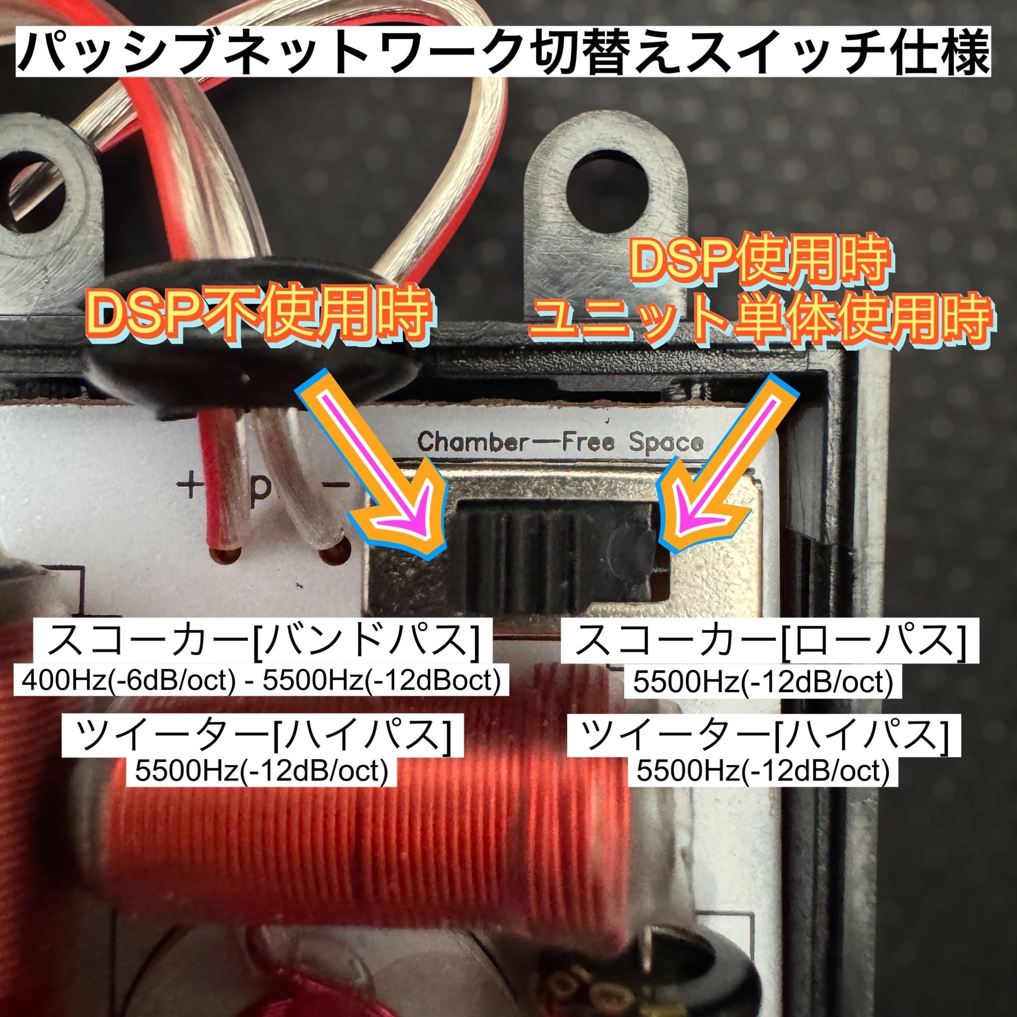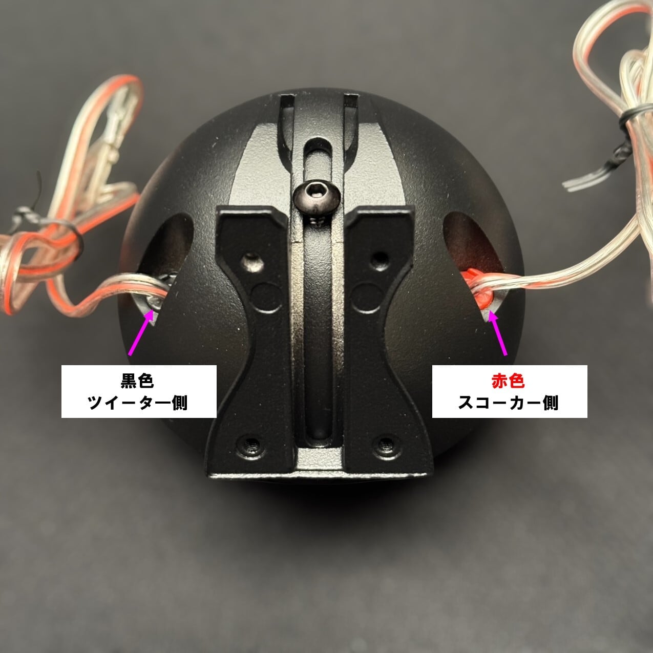 ※ケーブルは赤色のターミナル側がスコーカー側で黒色のターミナル側がツイーター側となりますので、接続の際はご注意下さい。