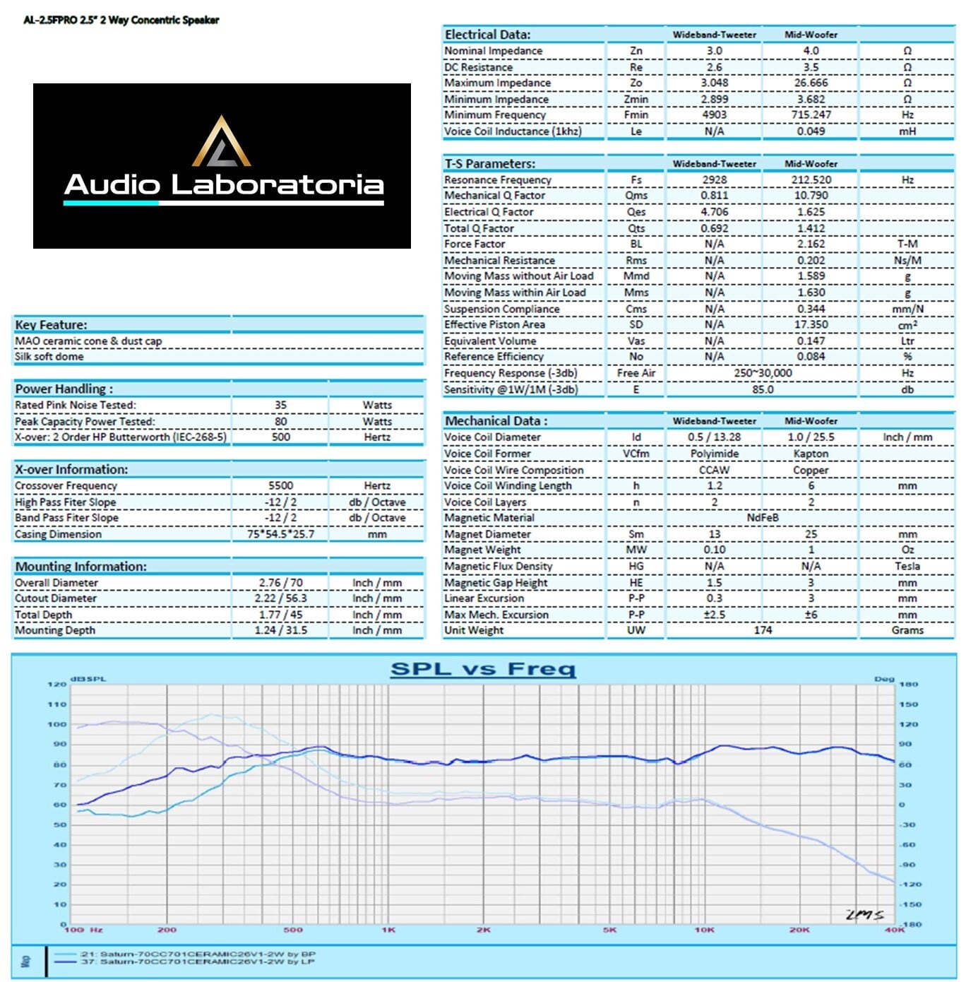 Audio Laboratoria 「AL-2.5FPRO」 2.5インチハイエンドワイドレンジ同軸スピーカー