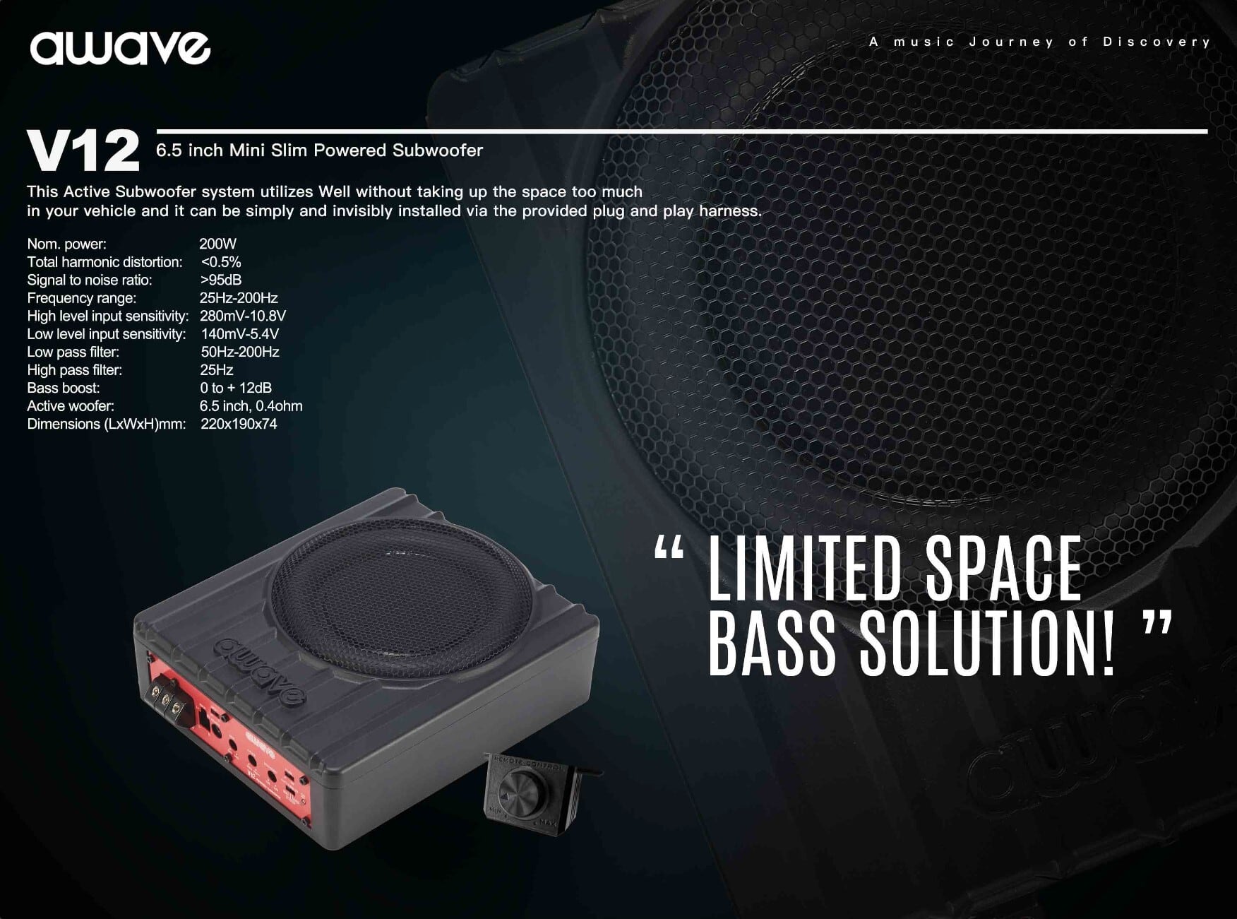 【国内正規品】awave V12 超小型 アンプ内蔵薄型6.5インチサブウーファー