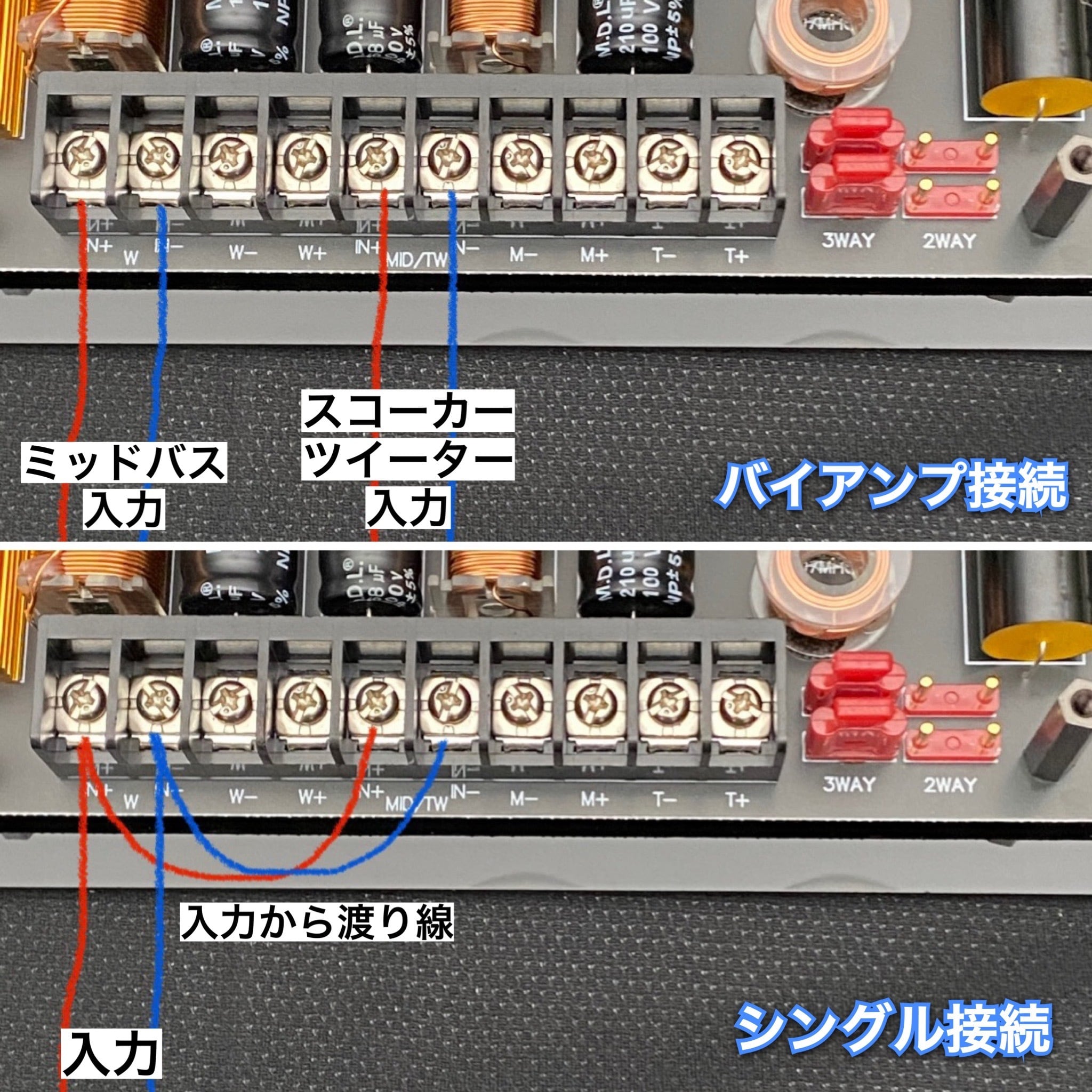 バイアンプ接続や2wayと3wayの切り替えも対応可能な高品質で高音質な当店完全オリジナル設計のパッシブネットワークです。