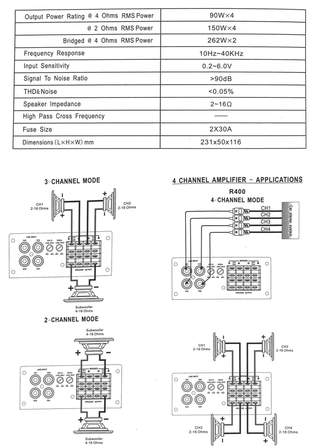 【国内正規品】【ハイレゾ対応】ROCK POWER R400 4chパワーアンプ 90W×4ch(4Ω)、150W×4ch(2Ω)、262W×2ch(4Ωブリッジ)