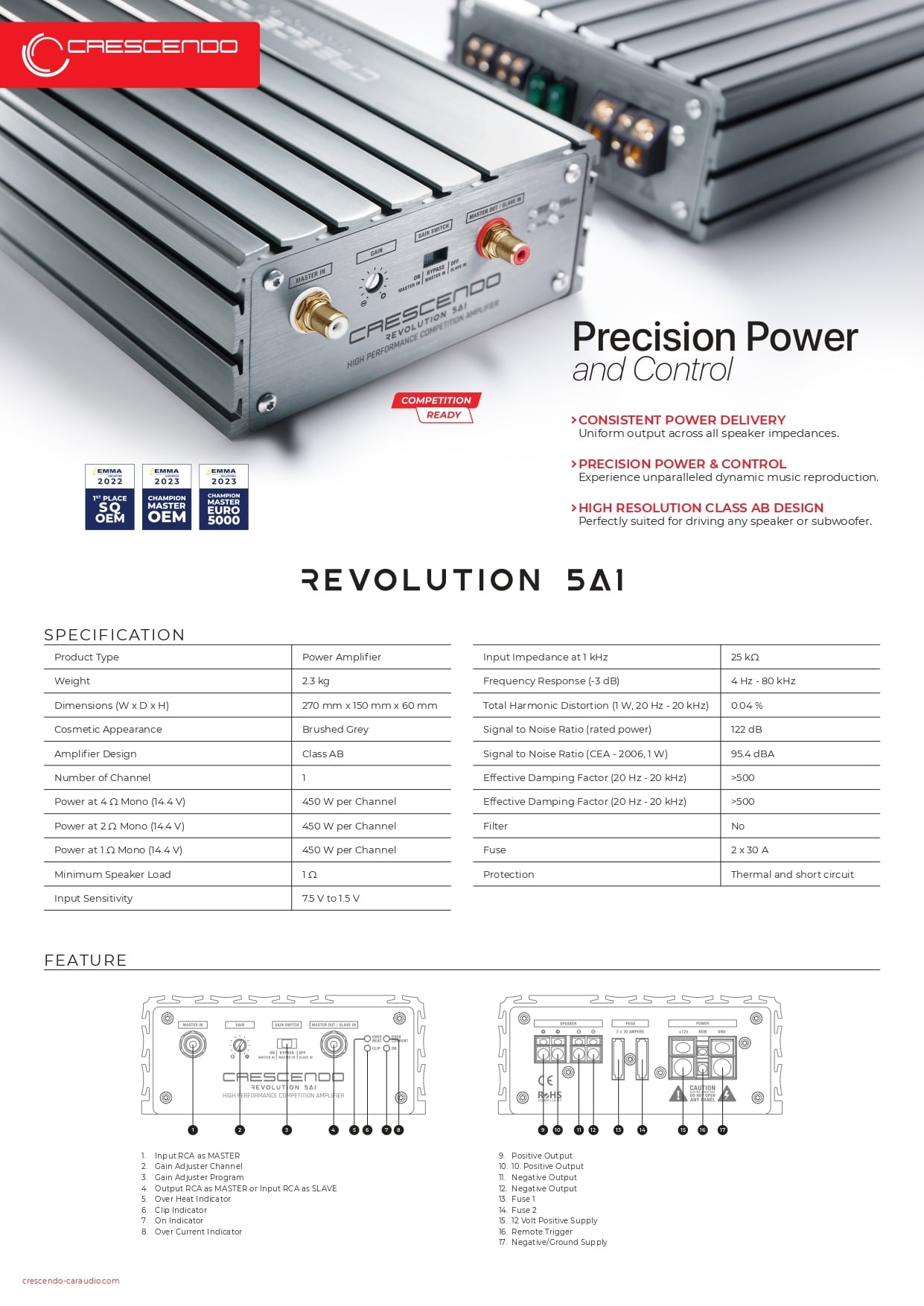 【国内正規品】CRESCENDO(クレッシェンド) 5A1 ハイエンド 1ch×450W クラスABストレートアンプ モノラルアンプ
