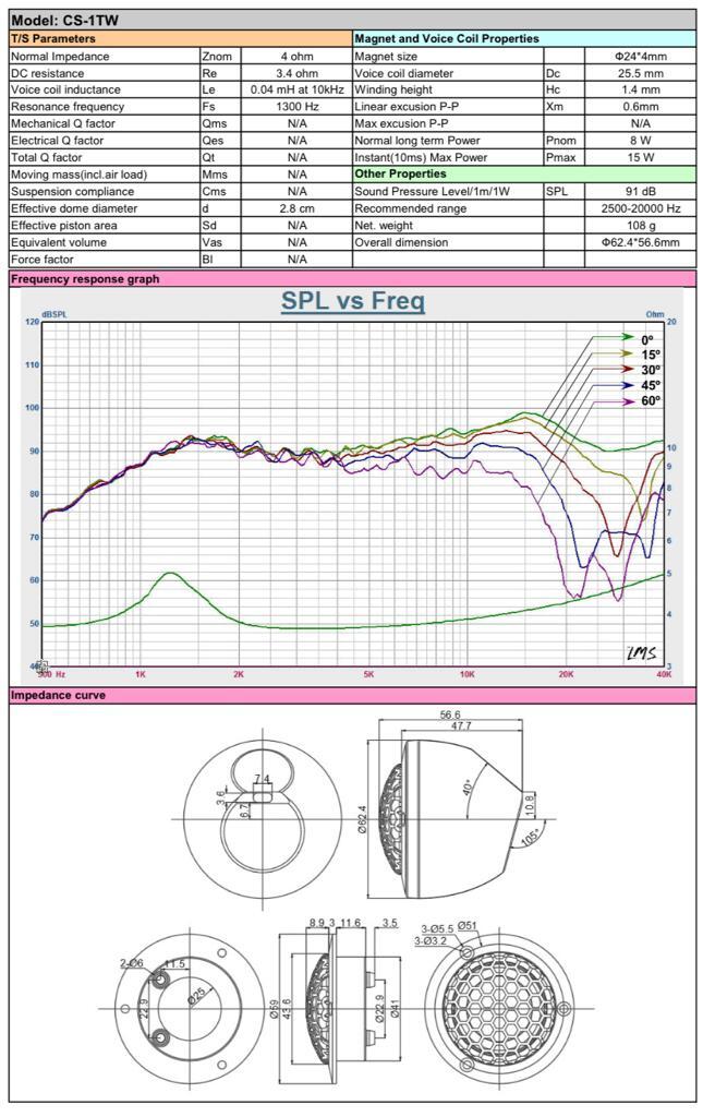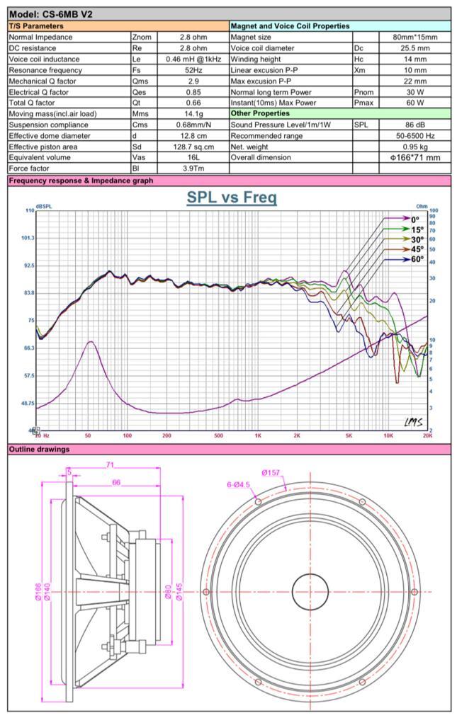 別で販売している同シリーズの3インチスコーカーCMR-3 PROと合わせて頂く事でベストマッチな3way構成も可能です。