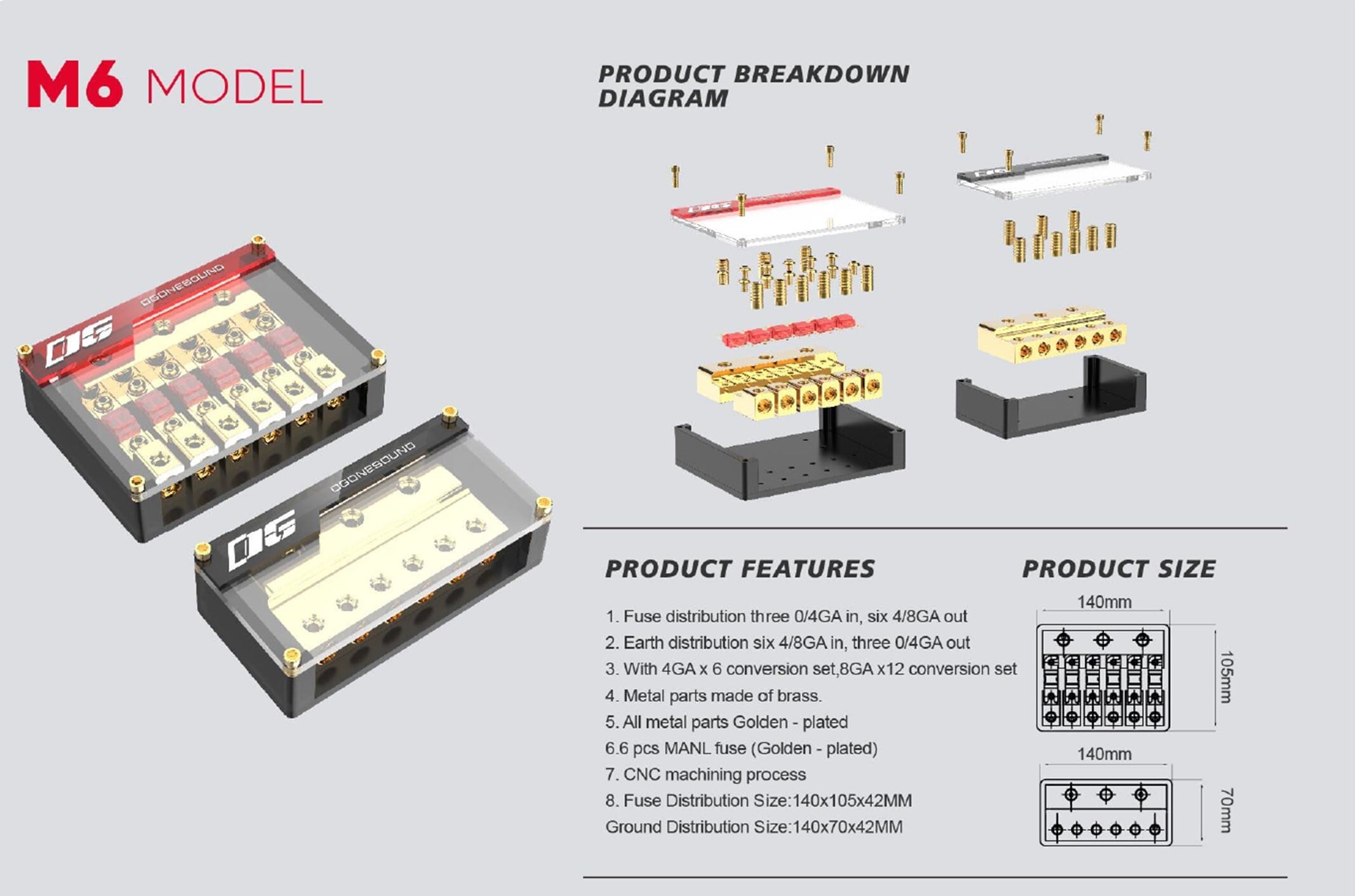 【国内正規品】OGブランド 「M6」ハイエンドヒューズブロック 6out(ヒューズブロック ディストリビューションブロック ミニANL)