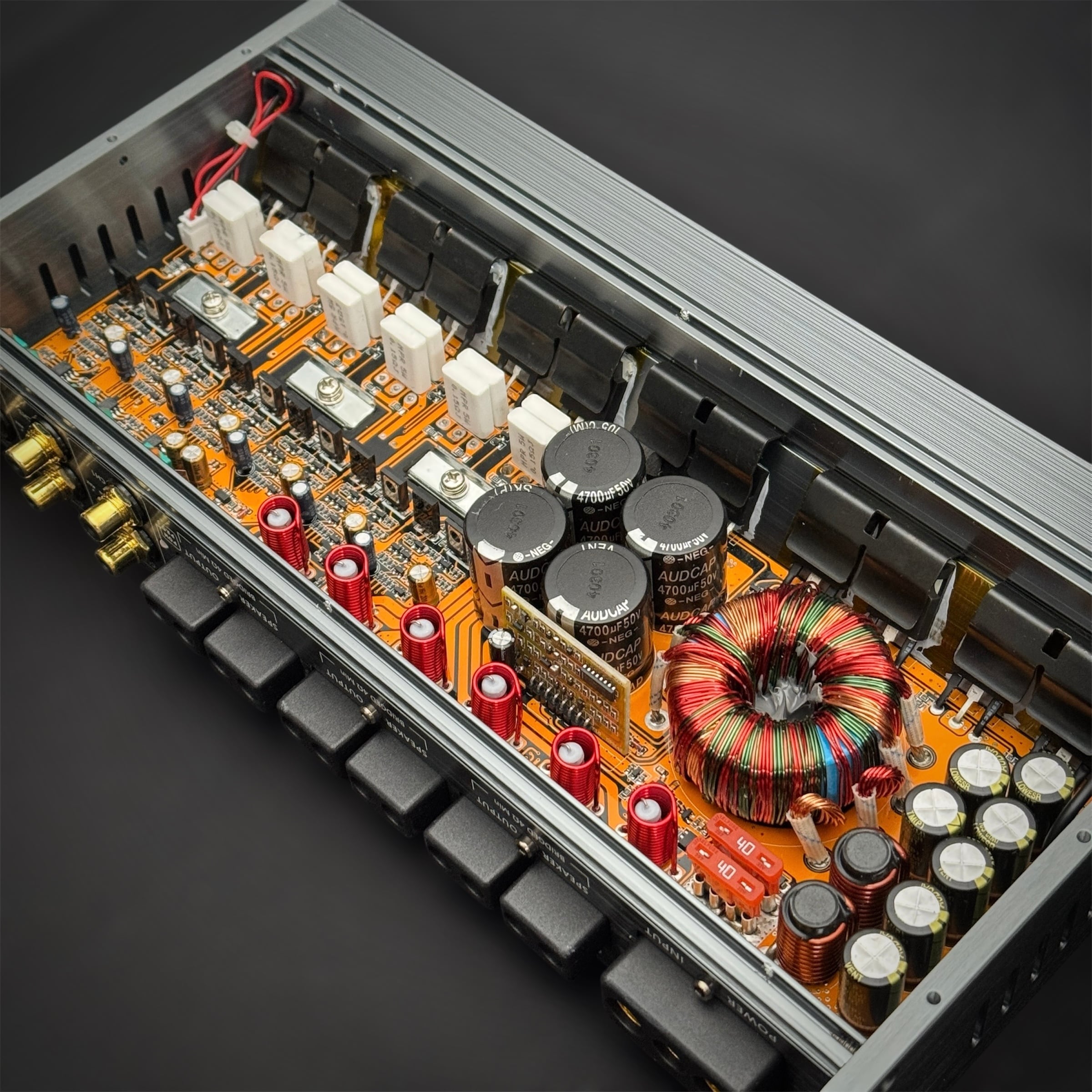 本製品はクラスABのストレートアンプですので、DSPやパッシブクロスオーバー等の周波数制御可能な機器との併用を前提としており、アンプ本体はゲイン調整のみでハイパスやローパス等の余計な回路を省く事により高音質化を実現しています。